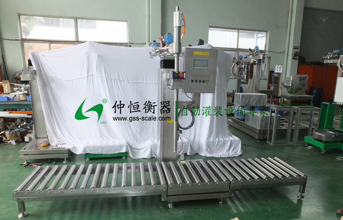 上海多倫化工有限公司在我司購買的化工液體灌裝機安裝調(diào)試完成,做最后的出廠測試。此款為200l液體灌裝機,可灌裝表面活性劑等有一定粘性、有腐蝕性的化工液體物料之灌裝。全機體采用不銹鋼材質(zhì)!