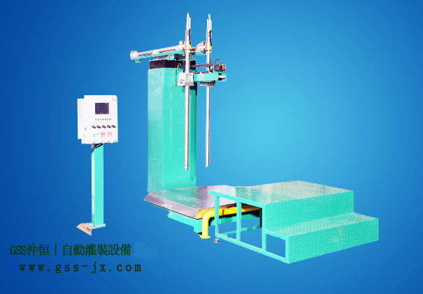 ◇開機---叉車放桶至秤臺---操作灌槍手柄,按剎車解除鈕并左右、前后快速對口---釋放剎車接觸鈕,灌槍緊緊固定---按【開始】鍵---灌槍自動插入桶口---自動去皮---自動打開灌槍及球閥組---大、小、微量三段灌裝---灌槍自動隨液面自動提升---到達目標值---灌槍自動關閉并升至桶外---(移除灌槍至下一桶,重復以上步驟至50GL四桶灌裝結束)---人工鎖蓋、碼垛。